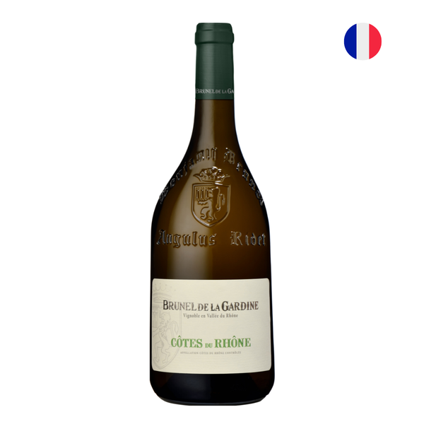 O Brunel de la Gardine Côtes du Rhône Blanc é um vinho branco seco elaborado pela renomada vinícola Château de la Gardine, situada na prestigiada região do Rhône, na França. Este vinho é uma expressão autêntica do terroir do sul do Rhône, combinando tradição e inovação na vinificação. Produzido a partir de um corte clássico das uvas Roussanne, Clairette, Viognier, Grenache Blanc e Bourboulenc, é um exemplar que reflete a riqueza e a diversidade da região.