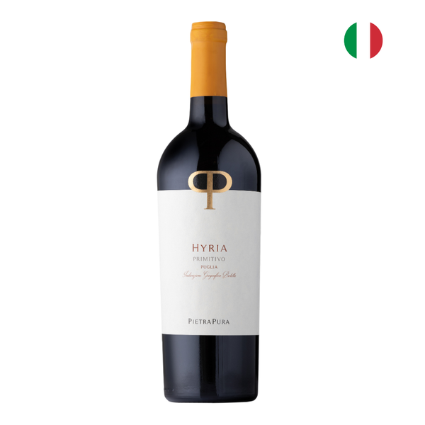 O projeto PietraPura é liderado pela prestigiada vinícola Rocca delle Macìe (Chianti), que estendeu seu expertise ao Salento, na Puglia, com o objetivo de valorizar as castas autóctones. A uva Primitivo – parente do Zinfandel –, cultivada sob o forte sol do sul italiano, ganha expressão através da colaboração entre enólogos da Toscana e produtores locais. O nome “Hyria” remete à antiga cidade grega de Oria, alinhando identidade histórica e terroir. O resultado é um vinho de excelente relação custo-benefício que expressa robustez, tipicidade e modernidade.